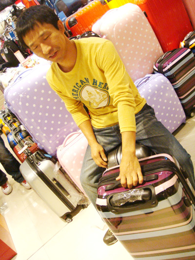 於是我們就一層一層找,最後在 3 樓果然是有一堆賣行李廂的耶!